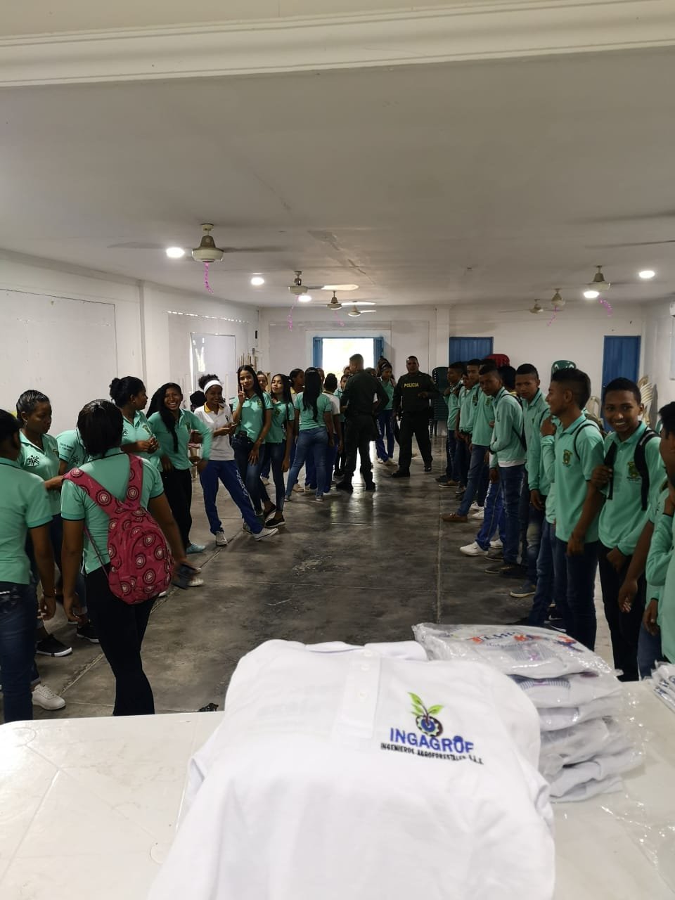 ¡Donación de camisetas-Fomentando conciencia ambiental en colegio del municipio de Tierralta! INGAGROF y Policia Ambiental 🌱🌿